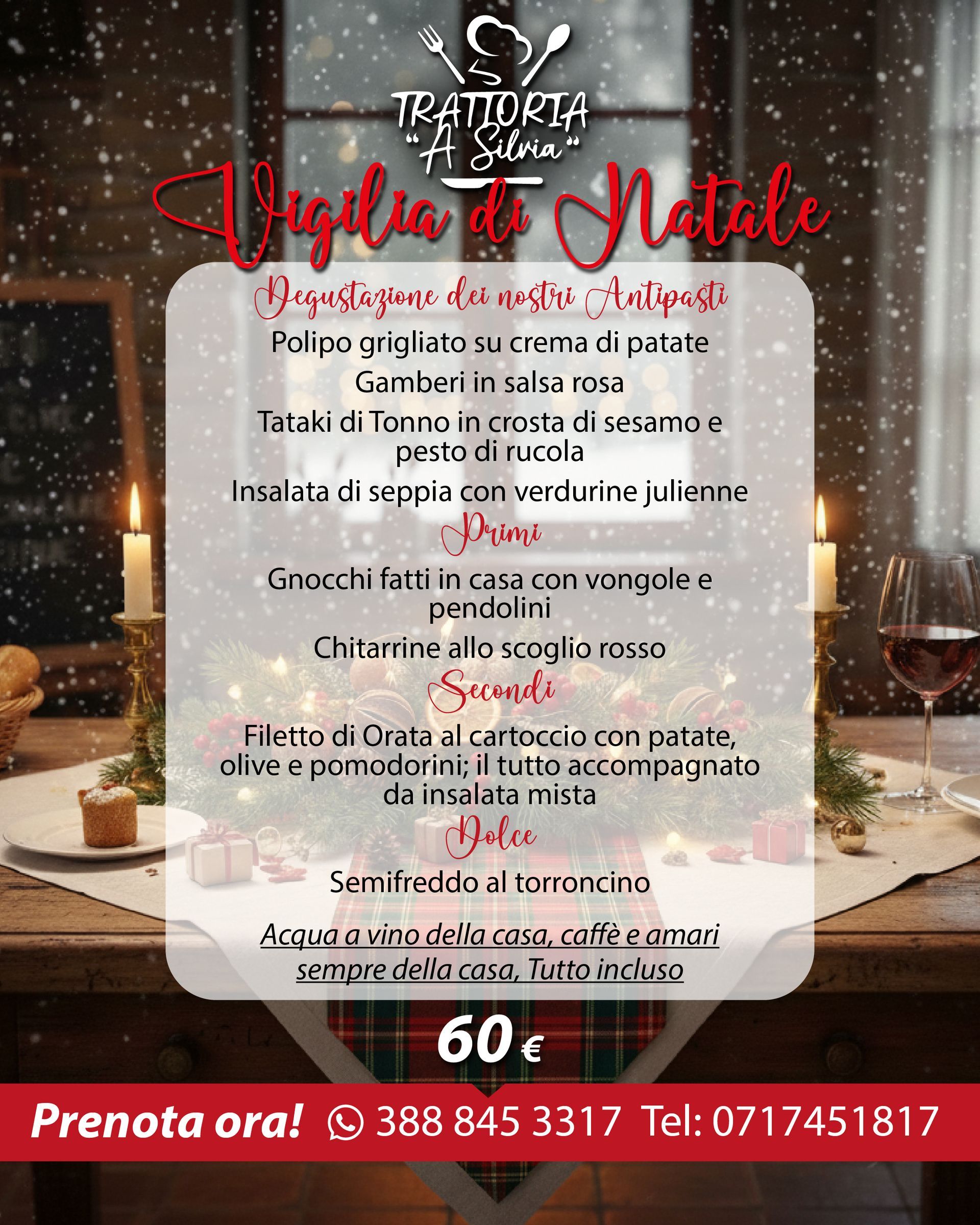 Alla Trattoria A Silvia, la cucina tradizionale marchigiana è protagonista indiscussa. Oltre ai classici irrinunciabili, come i ricchi Vincisgrassi, i Frascarelli marchigiani, i profumati arrosti e i selezionati salumi locali, il menù della trattoria si apre oggi anche a un affascinante viaggio nel tempo, alla riscoperta di antiche materie prime del territorio.